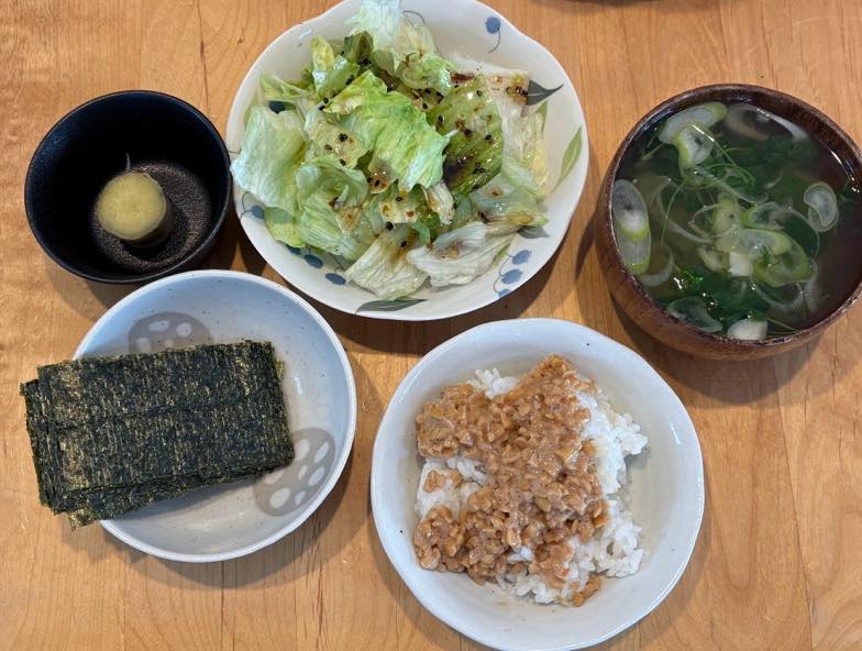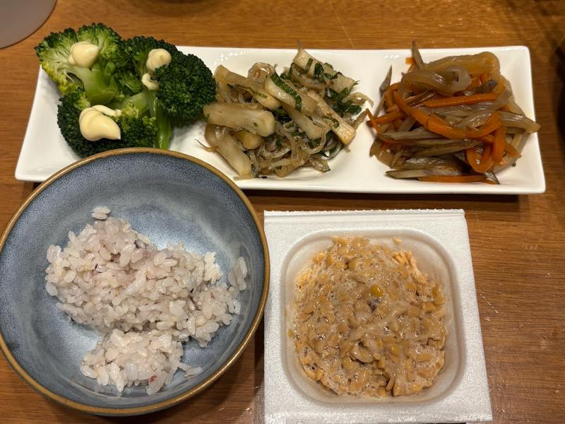 今は、大盛りサラダ、味噌汁、タンパク質、80gご飯で