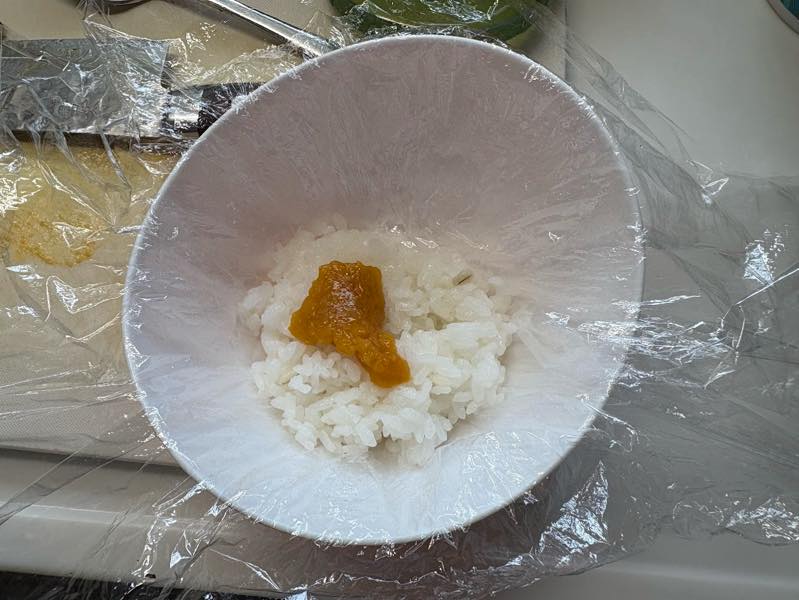重ね終わったらラップで包んで三角や丸など好きな形に握ります。